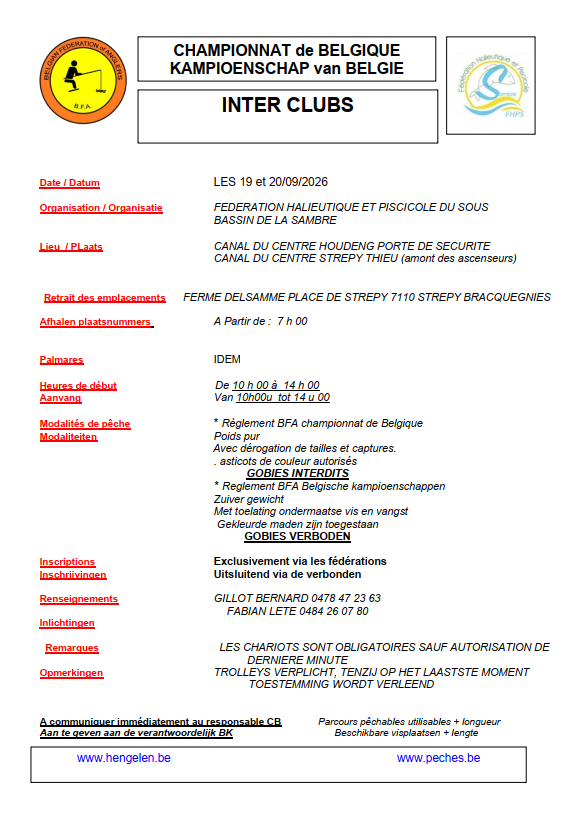 BK Interclub 2026 - informatiefiche 31 mrt Geschreven door Sportvisserij Vlaanderen Auteur: Jean-Marie Luyckx Sportvisserij Vlaanderen